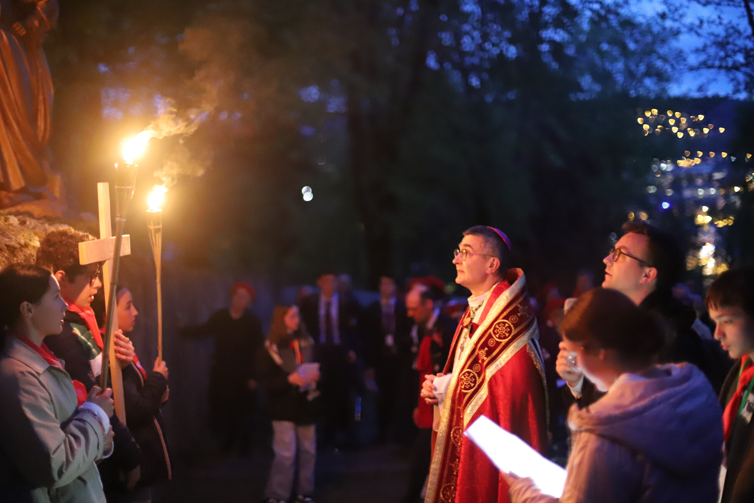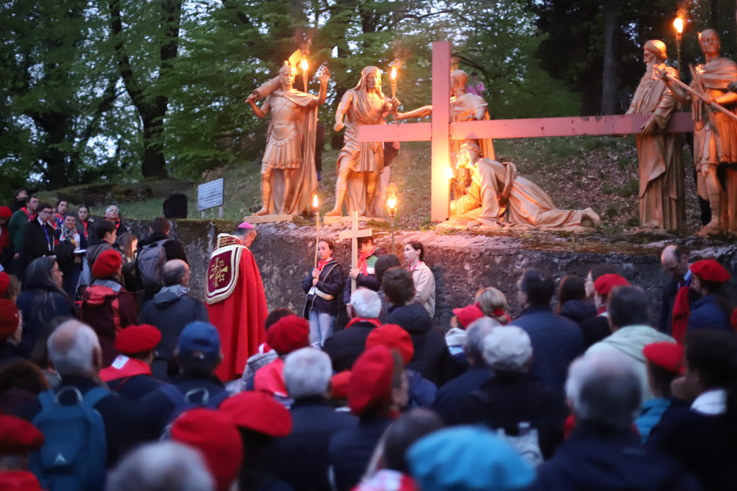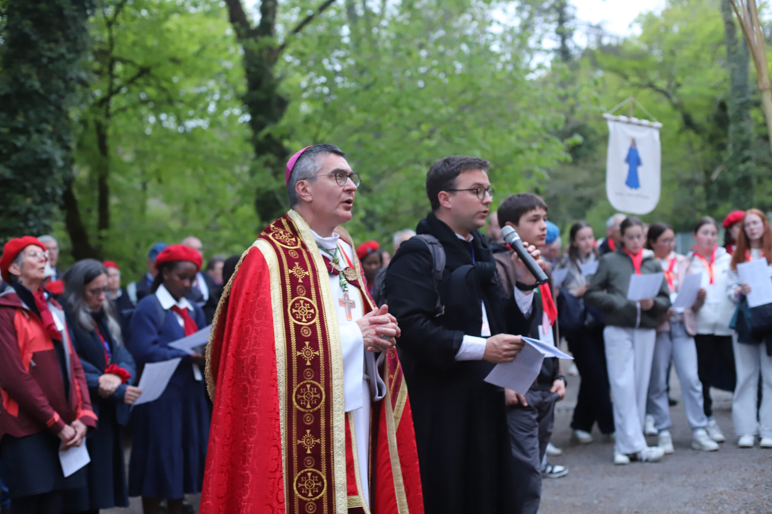 Étant dans le temps pascal, nous avons été invités à revivre la Passion et la Résurrection de notre Seigneur Jésus-Christ. Ce temps a été animé par le pélé jeunes du diocèse. Ce moment de mémoire de la mort et de la Résurrection du Christ a été confié à de nombreuses intentions, notamment celle de la paix dans le monde. Le chemin de croix de Lourdes est particulièrement fort, car il est escarpé et difficile à parcourir, très pentu, rappelant ainsi le chemin exigeant de Jésus jusqu’au Golgotha. Ce temps nous a aussi permis de nous confier au Seigneur, de lui remettre nos pauvretés ainsi que les intentions de prière que nous portons sur la croix, pour bien commencer ce pèlerinage à Lourdes.