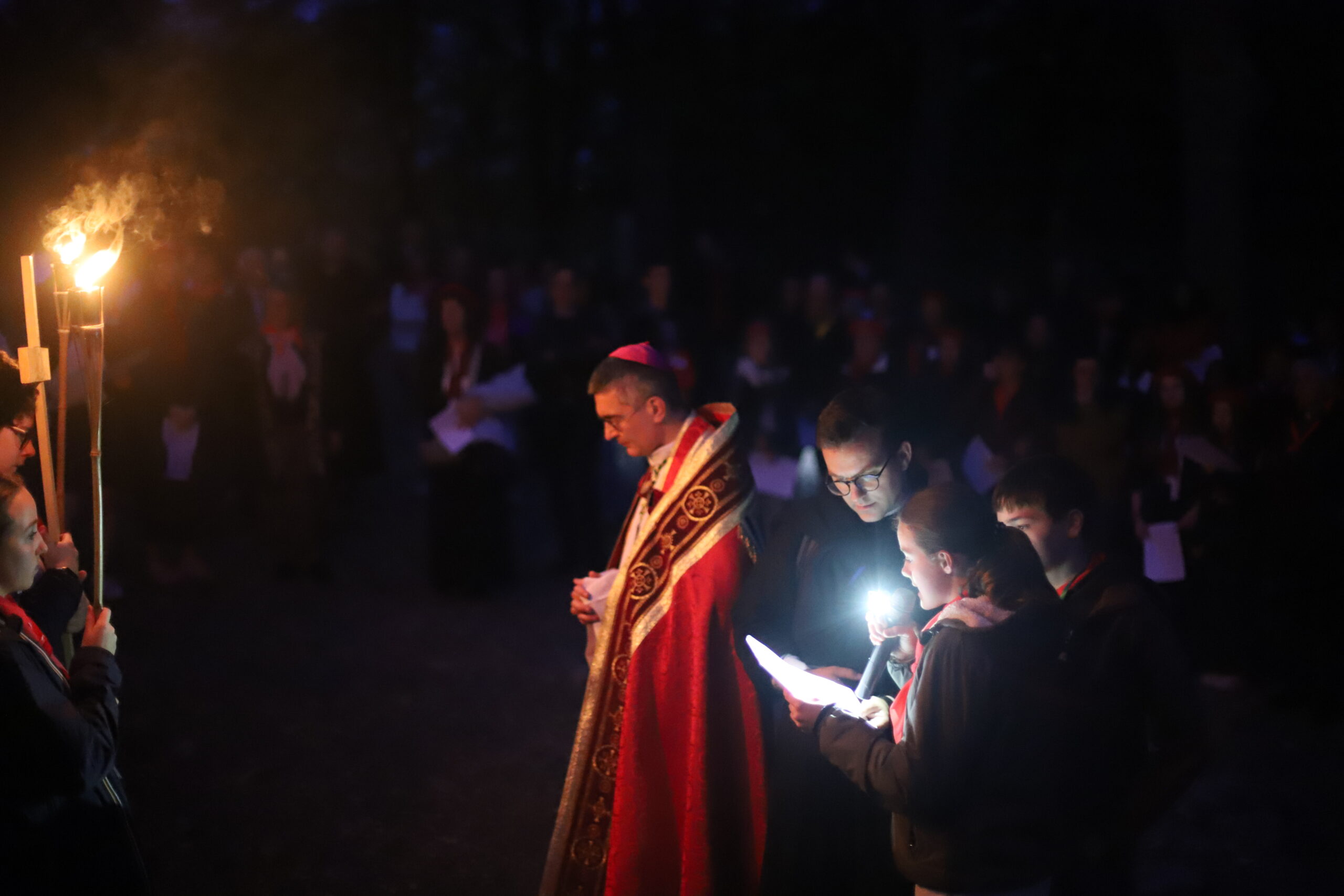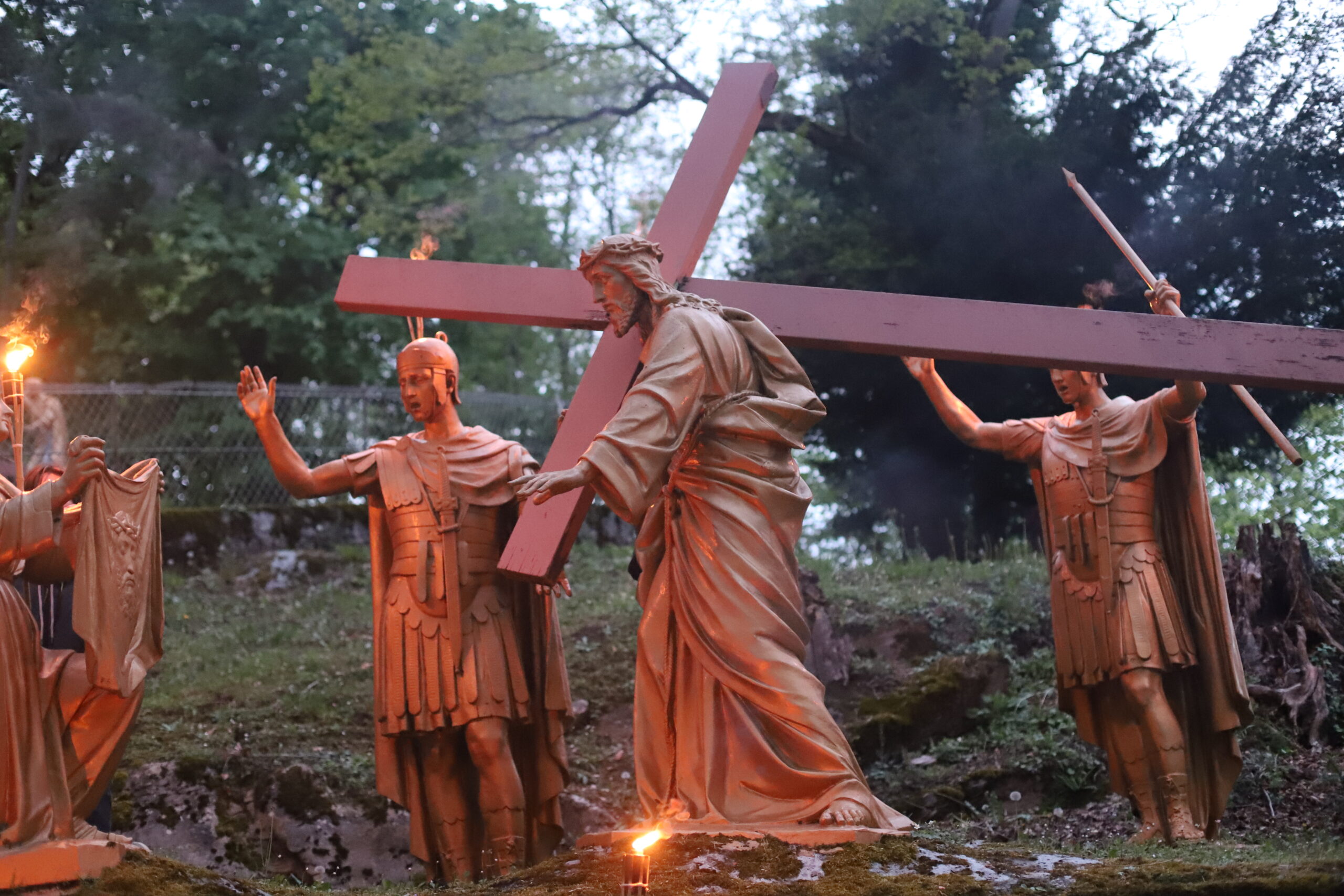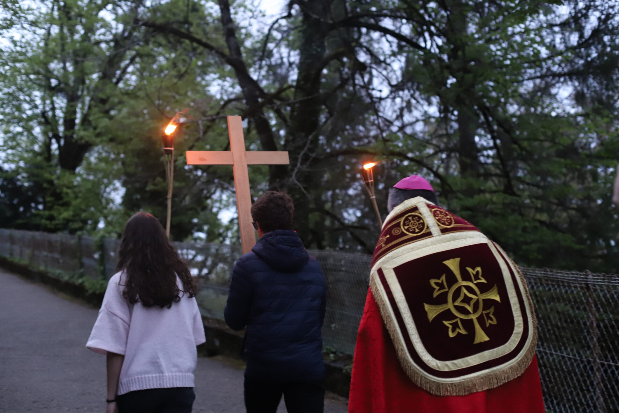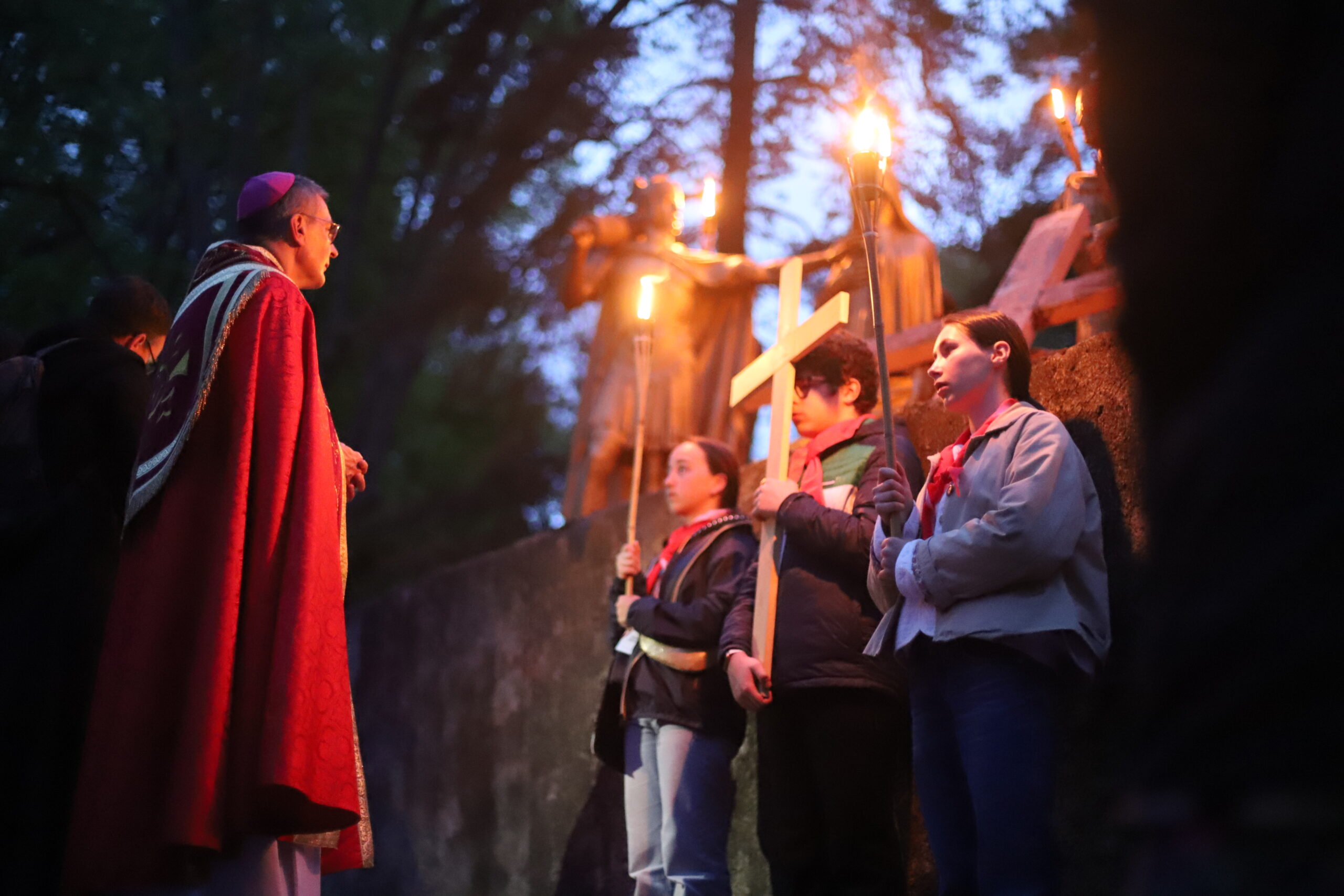 Étant dans le temps pascal, nous avons été invités à revivre la Passion et la Résurrection de notre Seigneur Jésus-Christ. Ce temps a été animé par le pélé jeunes du diocèse. Ce moment de mémoire de la mort et de la Résurrection du Christ a été confié à de nombreuses intentions, notamment celle de la paix dans le monde. Le chemin de croix de Lourdes est particulièrement fort, car il est escarpé et difficile à parcourir, très pentu, rappelant ainsi le chemin exigeant de Jésus jusqu’au Golgotha. Ce temps nous a aussi permis de nous confier au Seigneur, de lui remettre nos pauvretés ainsi que les intentions de prière que nous portons sur la croix, pour bien commencer ce pèlerinage à Lourdes.